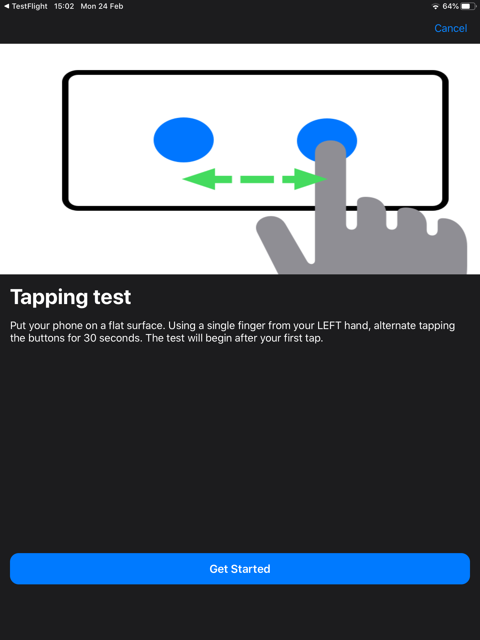 The other task you will be asked to perform is to alternate between tapping different locations on your screen. This widely used task allows us to study your motor function more generally.